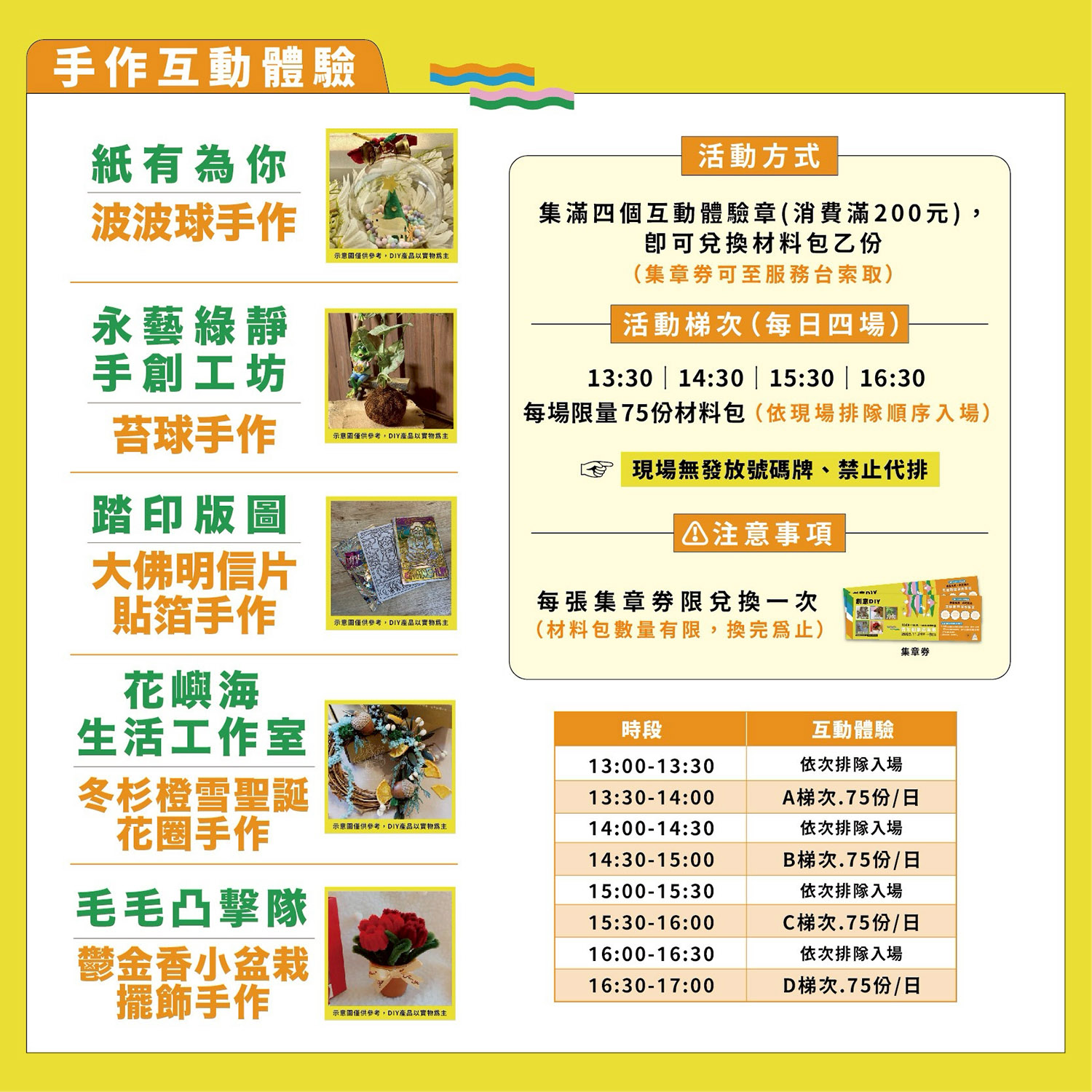 消費滿200元憑集章卡參加創意DIY活動